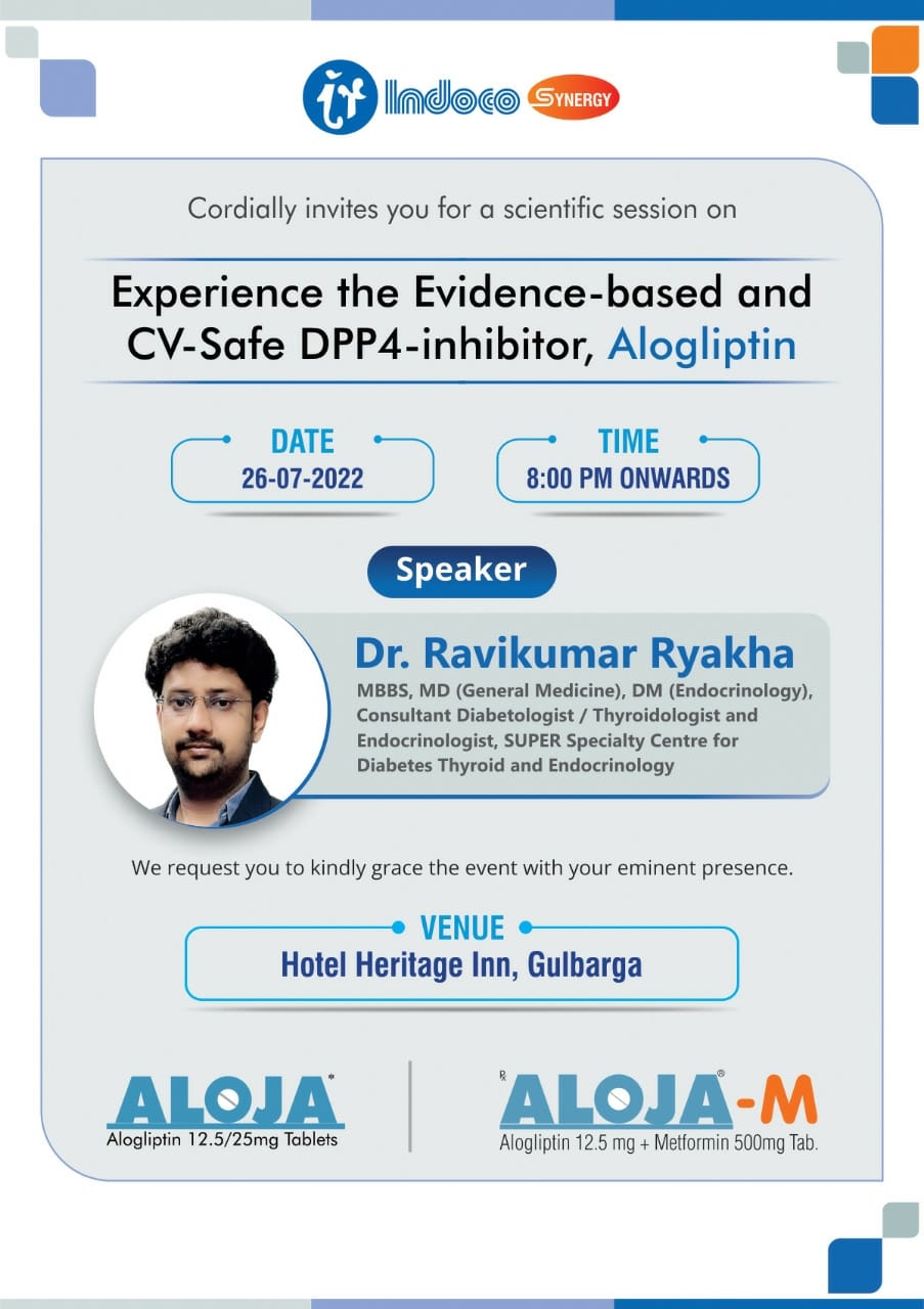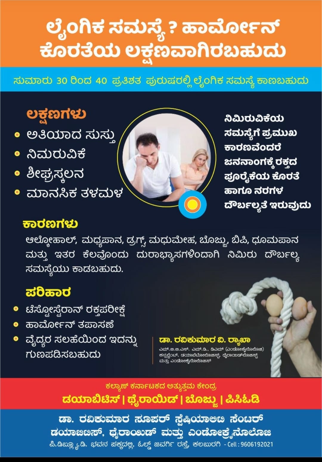 Dr. Ravikumar Ryakha is the Founder & Consultant Endocrinologist at Dr. Ravikumar Super Speciality Centre For Diabetes, Thyroid & Endocrinology in Kalaburgi (Gulbarga). It is one of the promiment & well-known clinics in Kalyana Karnataka region for Endocrinology.